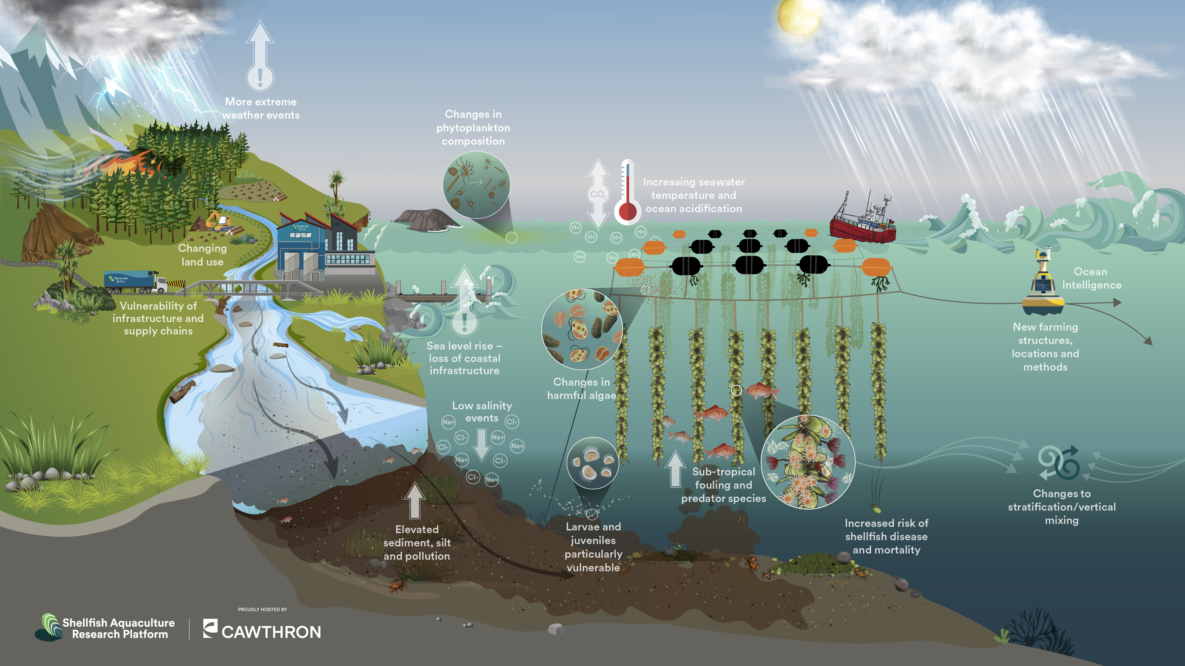 The strategies in the Seafood Sector Adaptation Toolkits were identified through a series of in-depth workshops led by Cawthron Institute, focused on addressing climate challenges across three key species.